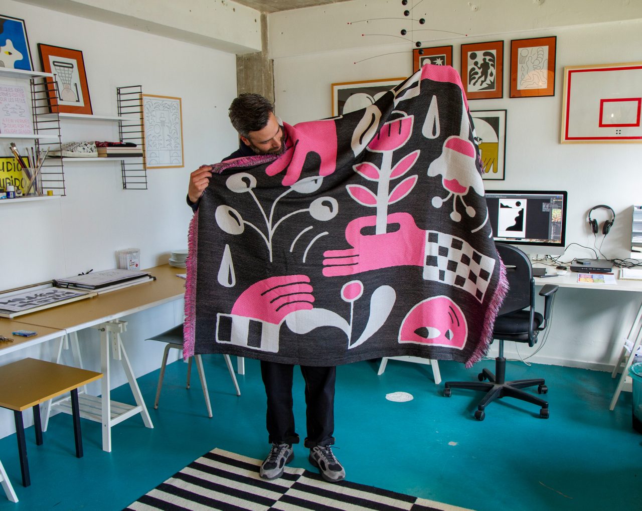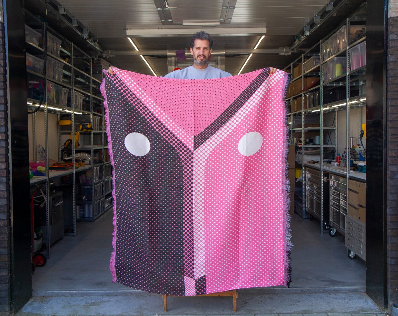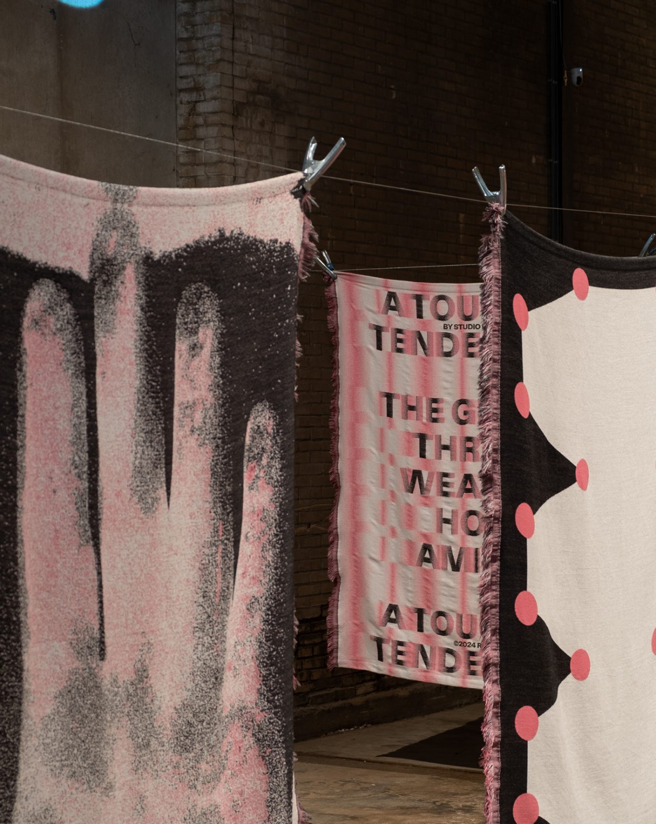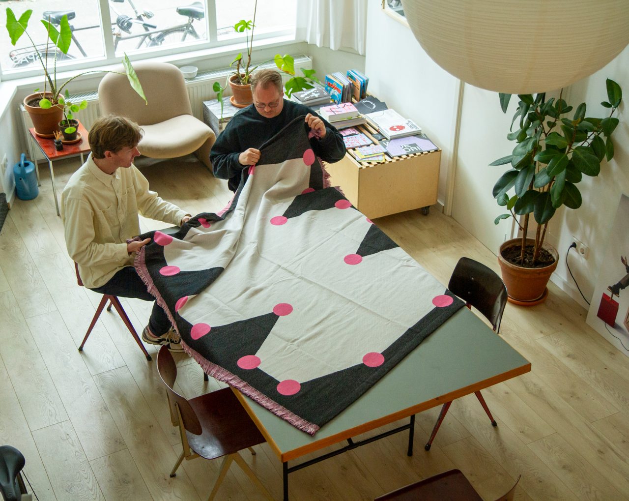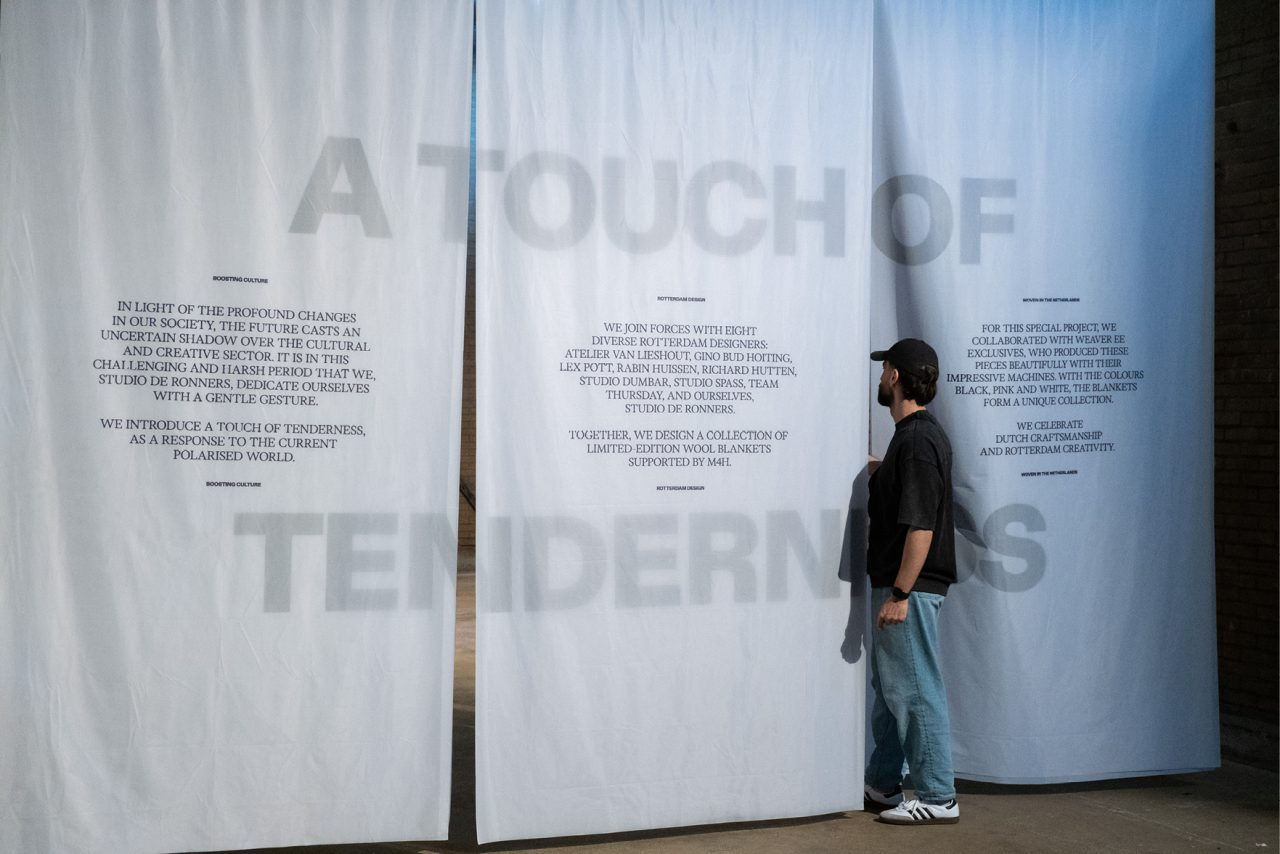 In response to growing polarization and the uncertain future of the cultural sector, we initiated A Touch of Tenderness. Together with eight other Rotterdam-based designers and artists, we created a collection of wool blankets—a universal symbol of warmth, care, and solidarity. More than objects, these blankets became a tangible statement: art and design as a unifying force. Each creator brought their distinct artistic vision, united by a shared palette of black, pink, and white—ensuring a cohesive yet diverse series. The result: a collection that embodies both individual expression and collective strength.