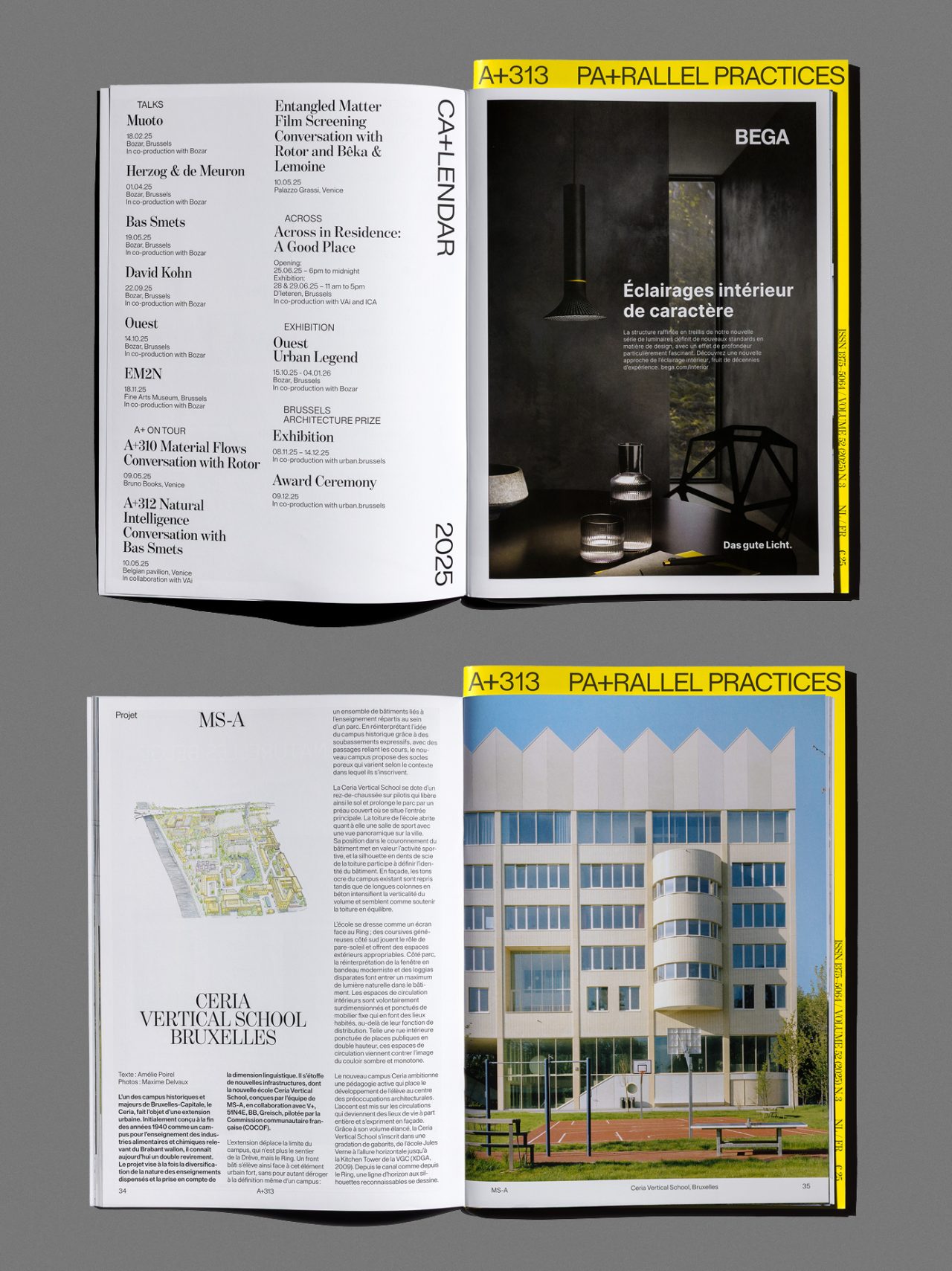 In collaboration with Anagramme, we realised five issues this year for the renowned Belgian architecture magazine A+, marking our first contribution as graphic designers. At the same time, this series initiates our role as ongoing designers for the publication. With five issues per year, released approximately every two months, A+ introduces not only a renewed visual identity but also a reworked editorial structure. Each issue is now composed of two parts: a carefully curated selection of recent Belgian architecture projects, and a thematic dossier that nourishes architectural discourse through essays, interviews, and case studies, often developed in collaboration with guest editors.
