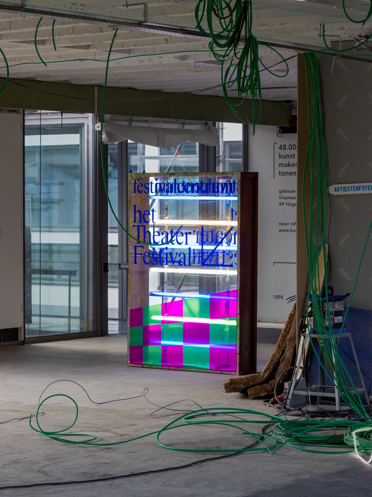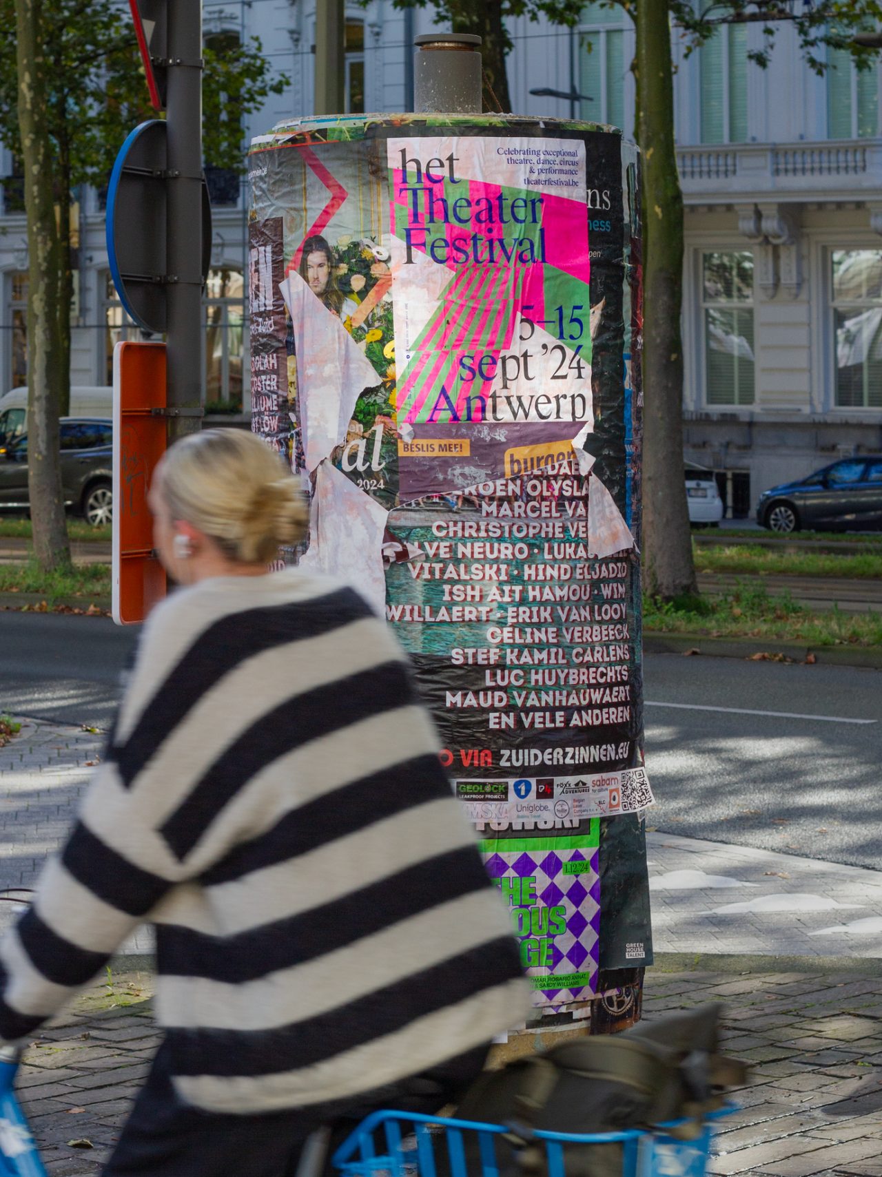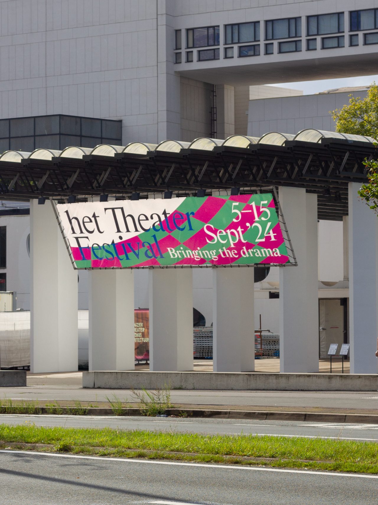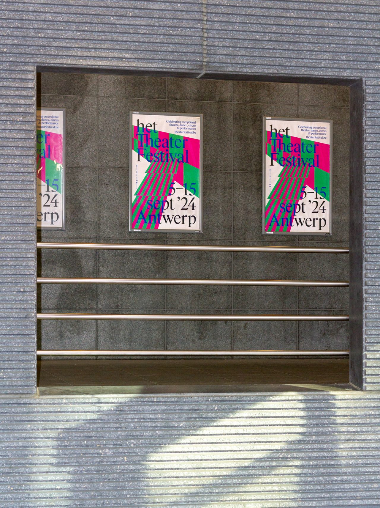 Het TheaterFestival is a prominent and nomadic celebration of exceptional theater, dance, circus, and performance. In 2024, the festival settled in Antwerp, where it spent 11 days showcasing the unique and vibrant theater scene of Flanders and beyond. Centered at DE SINGEL and extending to several partner venues across the city, the festival provided an energetic launch to the new performing arts season. The program included a festive opening, workshops, jury selections, and a showcase of some of the past season’s most intriguing works. This year, our studio had the opportunity to (re)brand the festival for the first time. We embraced bright colors and dynamic patterns to evoke the excitement of a stage, offering a fresh perspective and capturing the layered nature of performances.