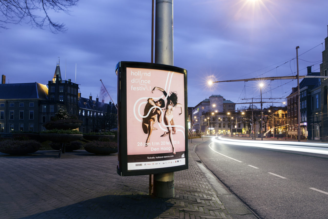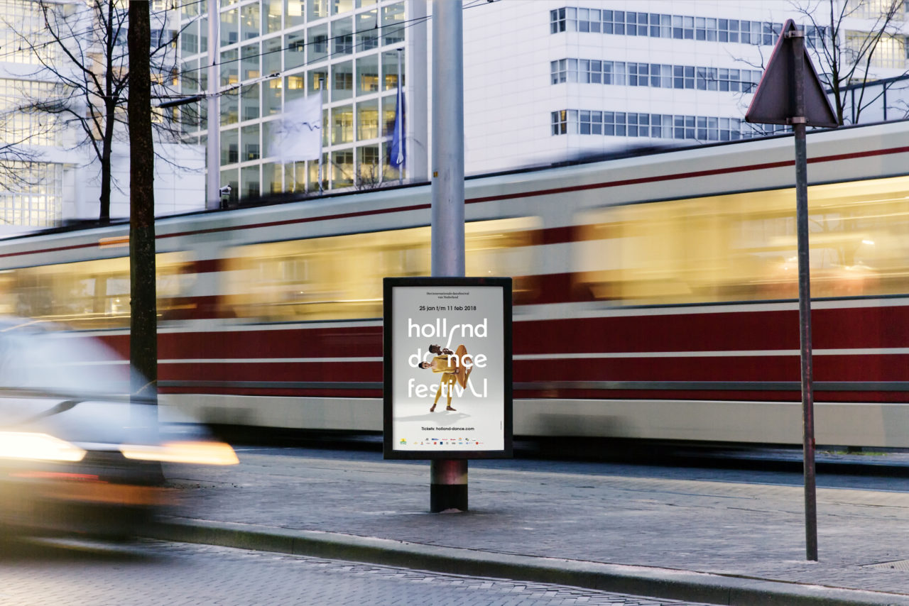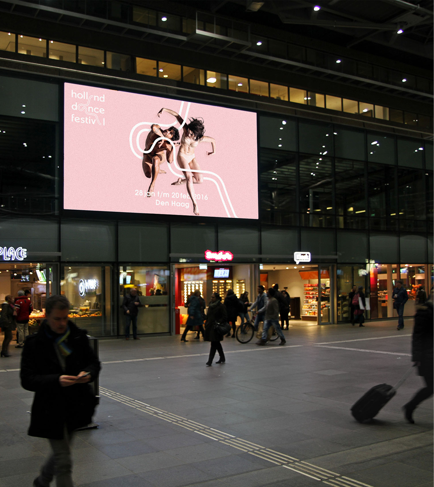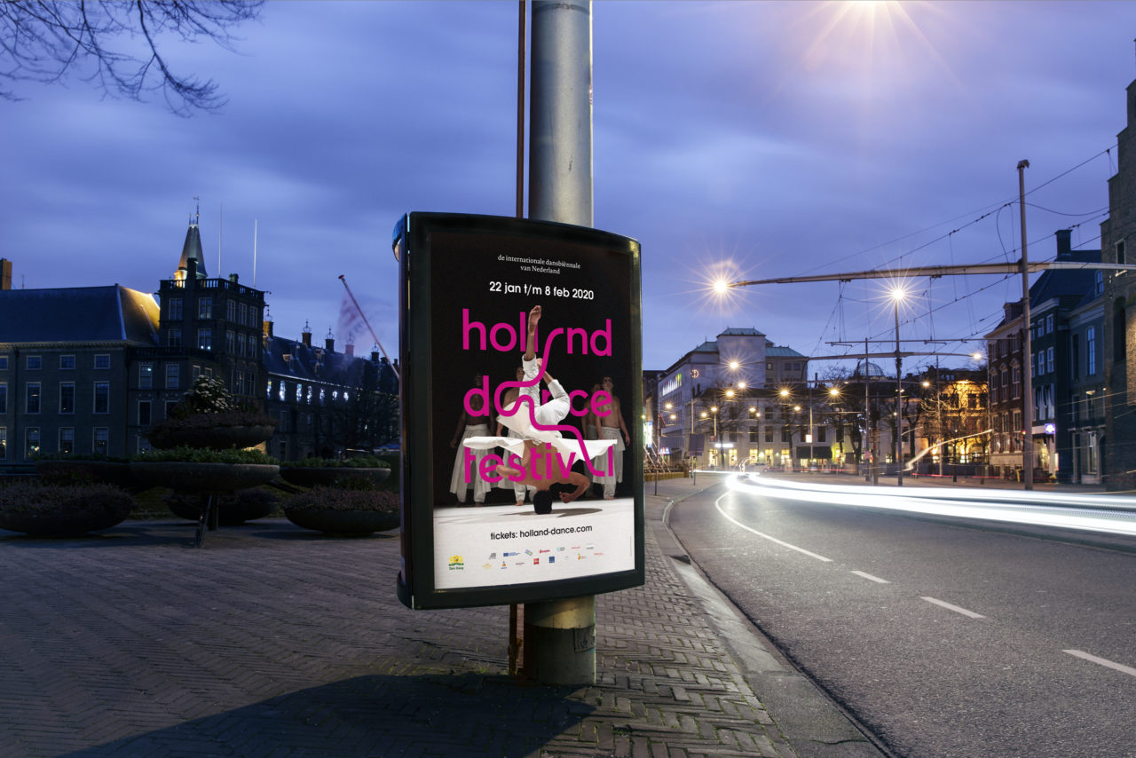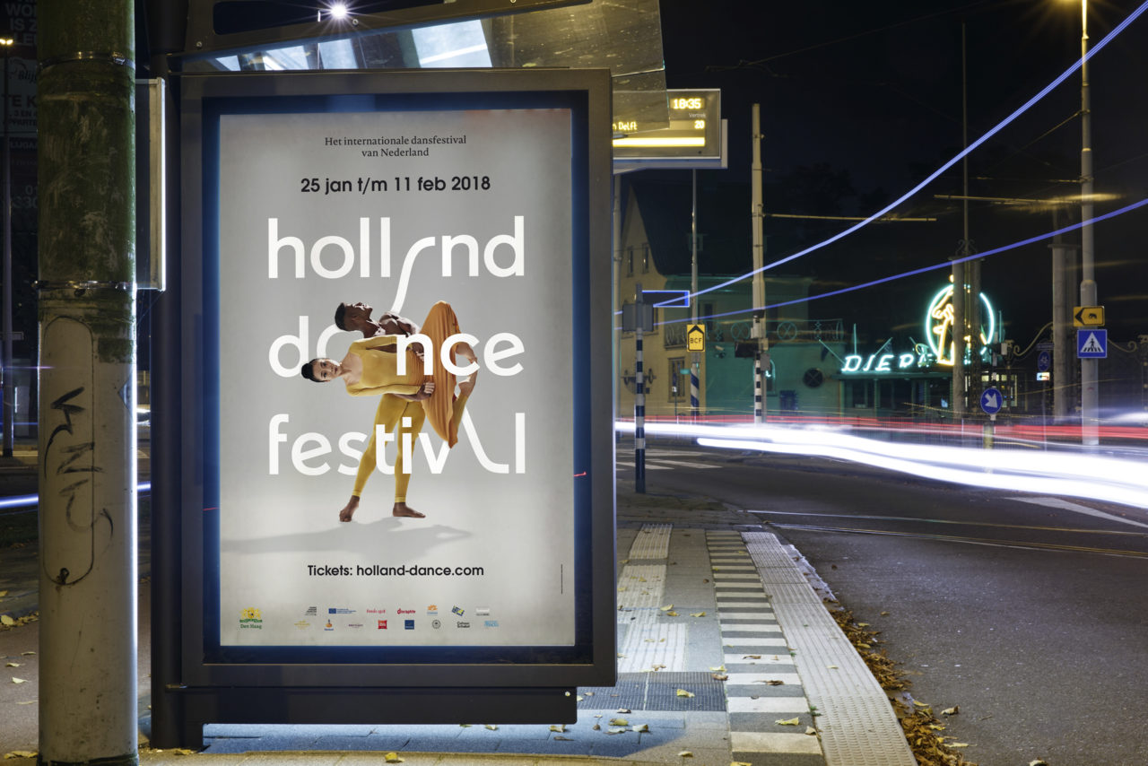 Holland Dance Festival has become a strong cultural brand thanks to our simplification of the logo, recognisable use of colour and the effective impementation of this new identity. The campaign image of each edition consists of a choreography of lines, letters and dancers that is intertwined with the iconic logo. By campaigning in a smart and infectious way in collaboration with the client, the fame of the festival is increased: the Holland Dance Festival draws a bigger crowd each year.