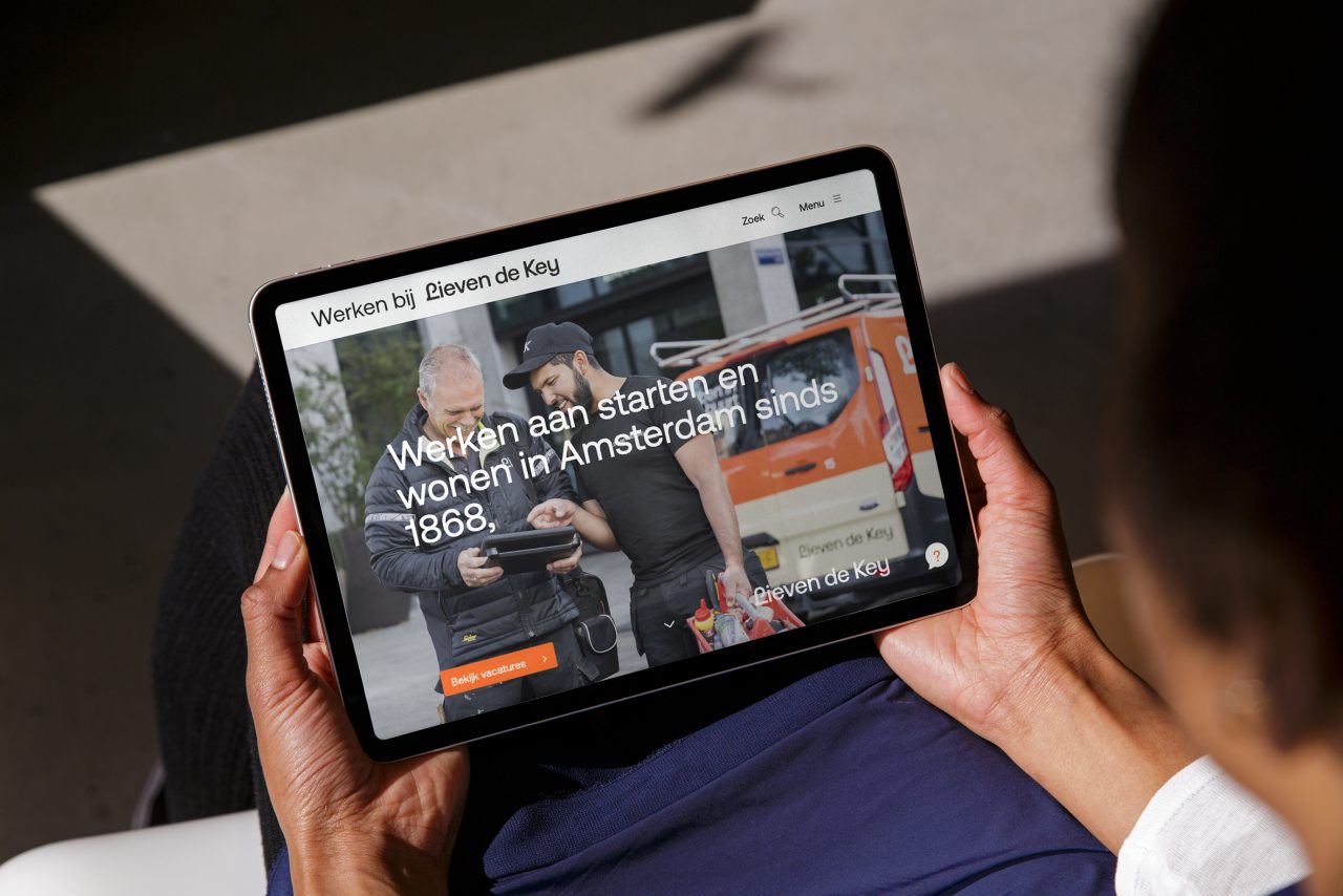 Lieven de Key is a housing association in Amsterdam with a rich history. The story began in 1868, when 500 workers decided to save a dime every week. Their mission? To create affordable housing and opportunities in a city that is always evolving. Lieven de Key remains true to its mission by supporting starters and residents in a dynamic city where everyone can begin, grow, and live together. This rich history, unique identity, and vision call for a look that fully reflects these values.