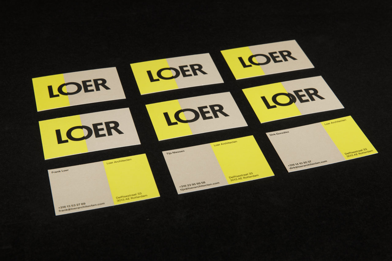 Loer Architects is a Rotterdam-based firm that works on future-proof architecture with a focus on durability and craftsmanship. Loer combines several apparent contradictions in their work. They state that they create “architecture with both feet on the ground and the head in the clouds.” This duality returns in the identity we created for the firm.