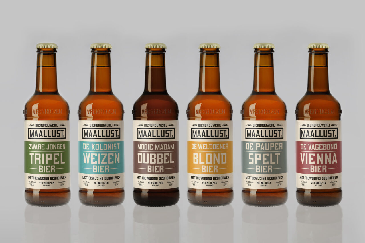 Maallust Brewery was founded in a newly rediscovered grain mail in the former ‘prison village’ of Veenhuizen. Here, twenty-five passionate entrepreneurs and brewers fulfilled their dream of creating their own brewery with a signature style. One of the key ingredients of a successful microbrewery is good branding: the name and design, inspired by Veenhuizen’s turbulent history, have helped Maallust become the largest craft beer brewery of the Northern Netherlands.