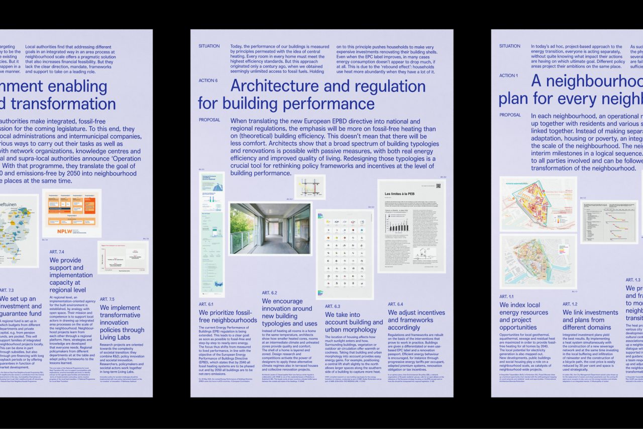 Our design work helped to bring clarity and cohesion to this ambitious initiative led by Architecture Workroom Brussels. Through a thoughtful visual identity and spatial storytelling, we translated complex urban challenges into an accessible and engaging exhibition experience. Our graphics guide visitors through the urgent need for collective action, highlighting key strategies and inspiring collaboration. Throughout the public programme of workshops and debates in the space, the visitor is invited to reflect and collaborate with other stakeholders on the fields of action that add up to an integrated neighbourhood approach.