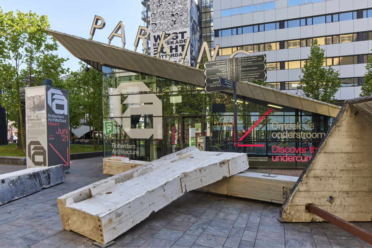 To show all the innovative architecture and how architects design opportunities tackling societal issues, Architecture Institute Rotterdam, Rotterdam Festivals and Rotterdam Partners joined forces. With various parties, this active community organizes broad and accessible year-round events. In June 2021, the main event RA Month focused on Rotterdam’s undercurrent. Here people could literally experience something was bubbling under the surface by visiting the Festival Heart eight stories below Rotterdam Central Station. The exhibition in the underground parking garage, led visitors through an immense landscape of concrete rubble. It showcased how architects, the city and its inhabitants work together to become more resilient.