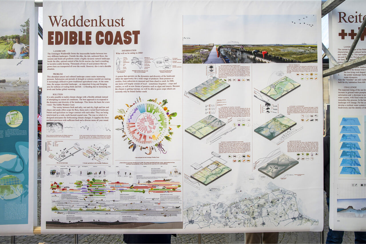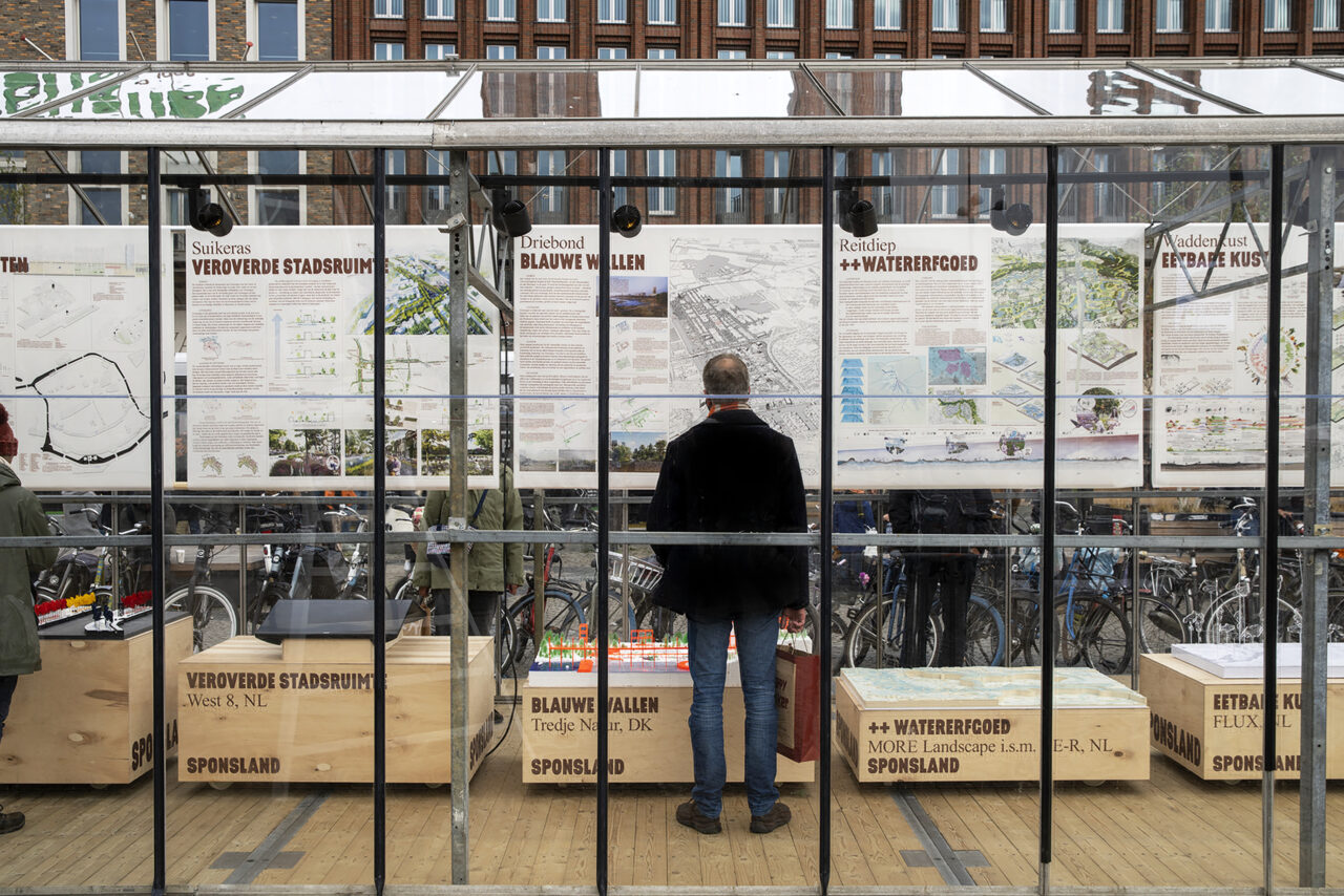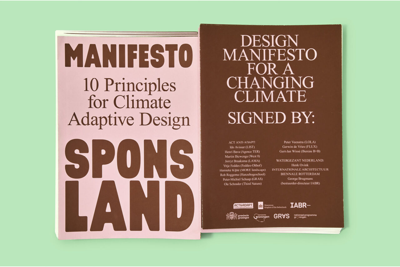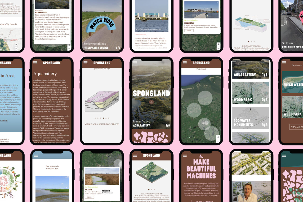 Practically nowhere in the Netherlands does the climate challenge come together as concentrated as it does in Groningen, which makes it an ideal testing ground for climate adaptation and system change. In Sponsland – part of the Act & Adapt Design Manifestation Climate Adaptation Groningen – four Dutch and four international design agencies sketch a picture of Groningen in 2120. These agencies have provided their plans with concrete steps, the first of which can already be taken tomorrow. Our assignment: translate their plans into a ‘traveling exhibition’ that can pop-up at different places, with a manifest, a book and a website that appeal to a wide audience (politicians, policy makers, civil servants, specialists, designers, and citizens).
