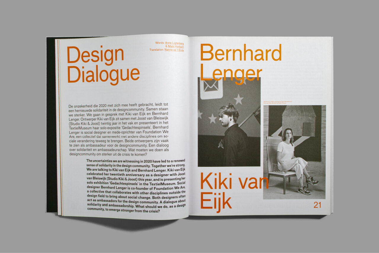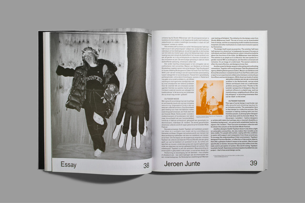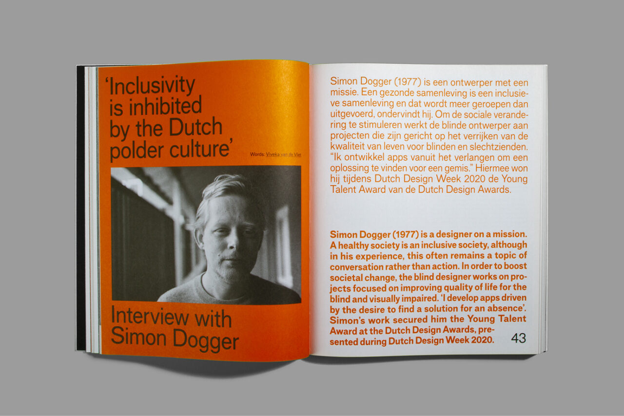 In het magazine focussen we op design en essays rondom het thema. In het jaarboek vind je alles wat er het afgelopen design jaar speelt: van awards tot werk van opkomend talent en studenten. Voor elke editie vragen we een andere ontwerper voor de cover.