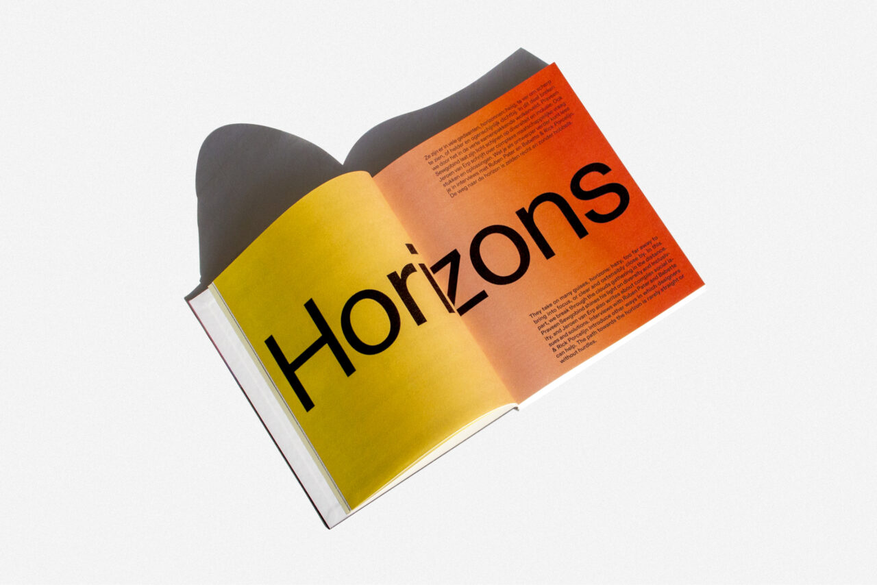 In 2021 werd het thema ‘Horizons’ verkend aan de hand van werk en teksten gemaakt door, met en voor Nederlandse ontwerpers met allerlei achtergronden. Om het thema te visualiseren verhuisden de paginanummers en titels naar de middelste (horizon)lijn en kregen artikelen een passend hemelverloop op basis van de aangeleverde beelden of tekst.