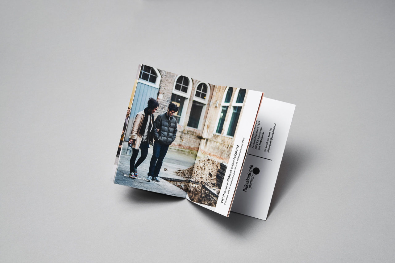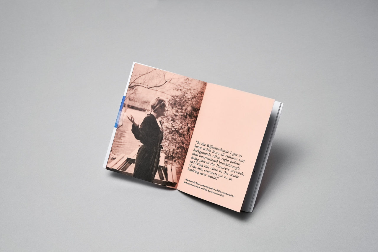 Beeldende kunst kan wel wat extra financiering gebruiken, en daarom zijn de Rijksakademie Pioneers in het leven geroepen. Als je als ambitieuze jonge professional de nieuwste ontwikkelingen en experimenten in de hedendaagse beeldende kunst een warm hart toedraagt, kun je lid worden van deze particuliere donatieclub. Hiermee steun je de de Rijksakademie van Beeldende Kunsten in Amsterdam. Onze studio ontwierp een pocketboekje en een VIP-pas voor Pioneers als dank voor hun steun.