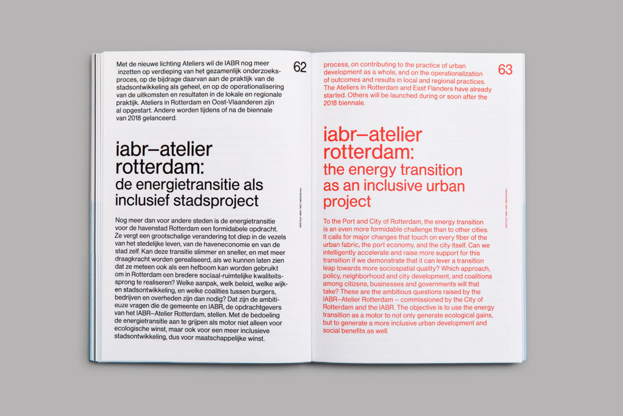 De kracht van dit concept is dat je het heel efficiënt kunt inzetten in alle communicatielagen van de Biënnale: de publiekscampagne, de signing in de stad en op het terrein, de catalogus en het tentoonstellingsontwerp. Ons ontwerp heeft bijgedragen aan de bewustwording onder bezoekers uit binnen- en buitenland, maar vooral ook uit Rotterdam. Het moet radicaal anders, maar wel met een optimistische aanpak!