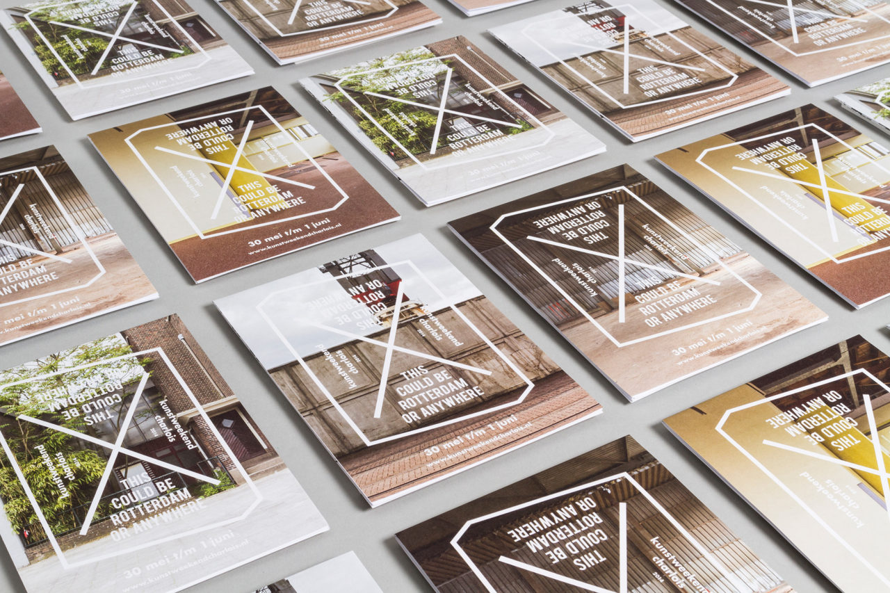 Het Kunstweekend vroeg studio de Ronners om een festival-identiteit te ontwikkelen. Een heldere markering van ateliers, kunstwerken, kunstinitiatieven en galeries was belangrijk. Studio de Ronners presenteerde hierop een 3D vlak met een extra markeringskruis. Het ruimtelijk effect zorgt voor een dynamische werking.