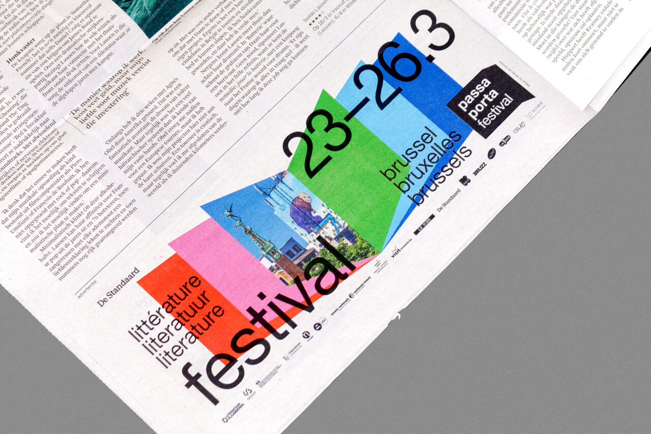 Omdat Passa Porta zich de komende jaren inzet op meer publieksverbreding waren ze op zoek naar een meer toegankelijke uitstraling voor het festival. Voor hun negende editie selecteerde ze onze studio als nieuwe partner voor de rebranding en uitwerking van de festivalcommunicatie.