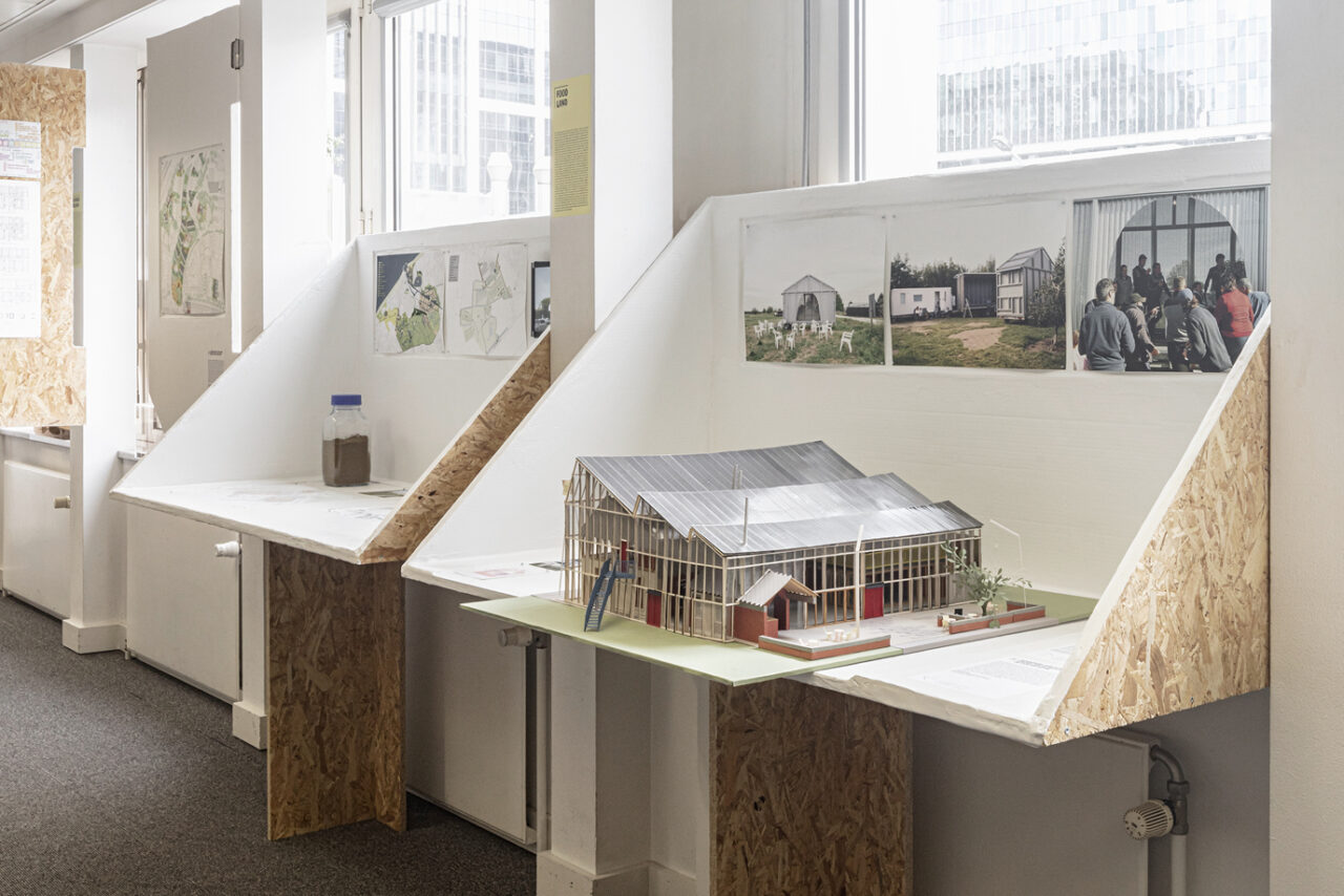 De scenografie structureert een werkruimte waarin nieuwe ontwerpstrategieën, architecturale typologieën, coalities en opdrachtmethodes besproken en gestimuleerd worden. Dit perspectief toont niet alleen de kwaliteit van elk project. Het laat ook zien hoe architectuur en landschappen samenwerken om de noodzakelijke transitie naar hernieuwbare energie, duurzaam voedsel, mobiliteitssystemen, circulaire economie, zorgzame leefomgevingen en een inclusieve arbeidsmarkt mogelijk maakt.