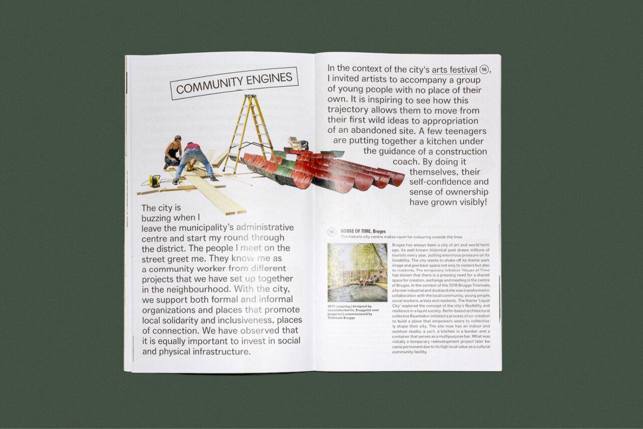 Het campagne ontwerp en de tentoonstellingsbrochure bouwen verder op de identiteit van ‘De Grote Verbouwing 2020–2030’, een publieksprogramma en denktank waar ondernemende burgers, overheden, bedrijven, wetenschappers en organisaties timmeren aan concrete realisaties. Onze studio ontwikkelende een participatieve identiteit als toolbox, die diverse actoren samenbrengt en net als de Grote Verbouwing, 10 jaar blijft doorbouwen.