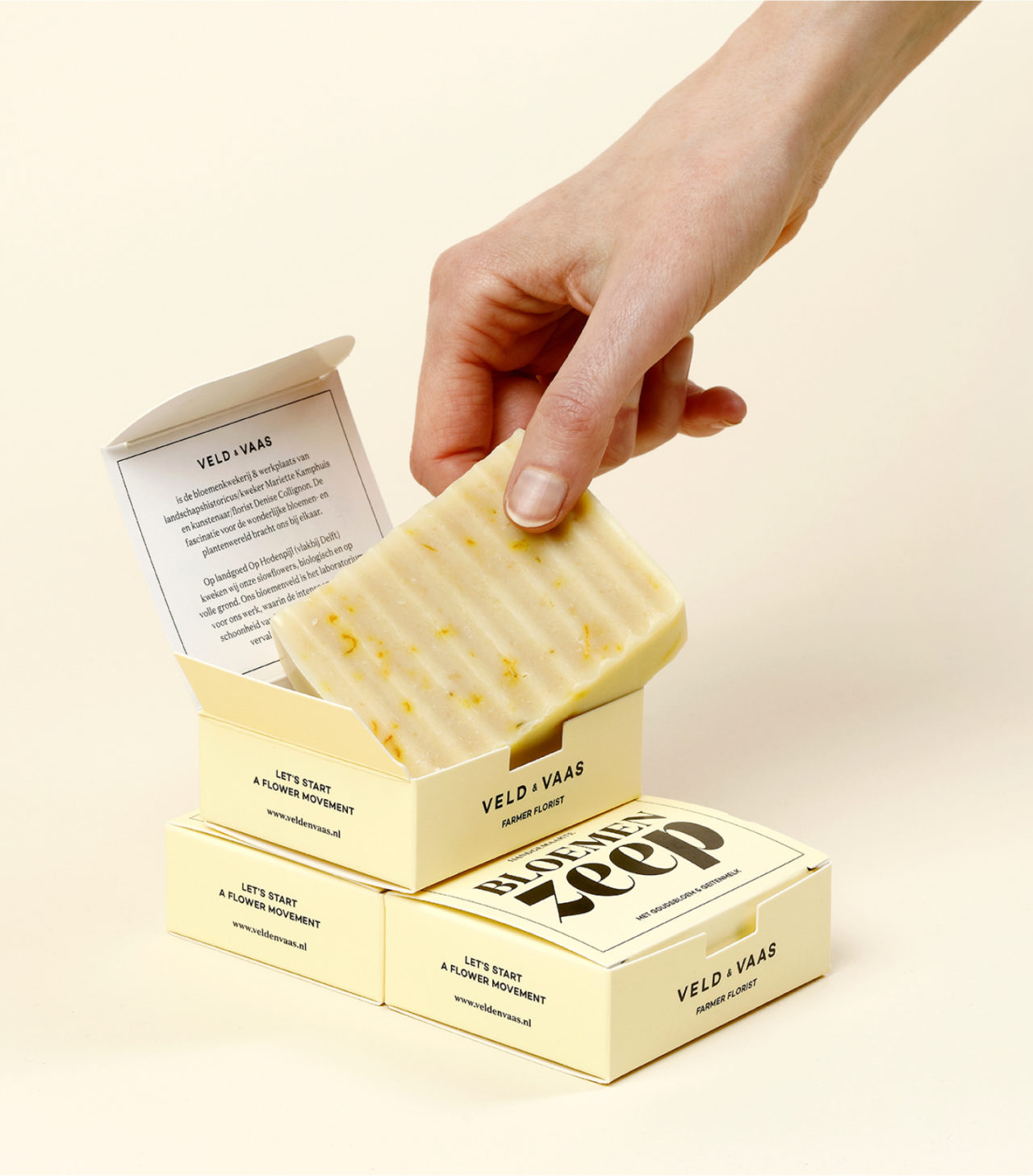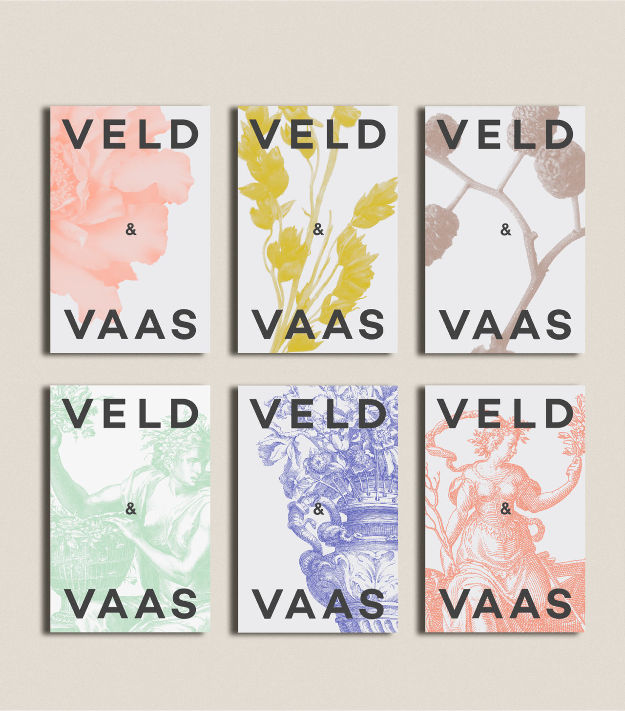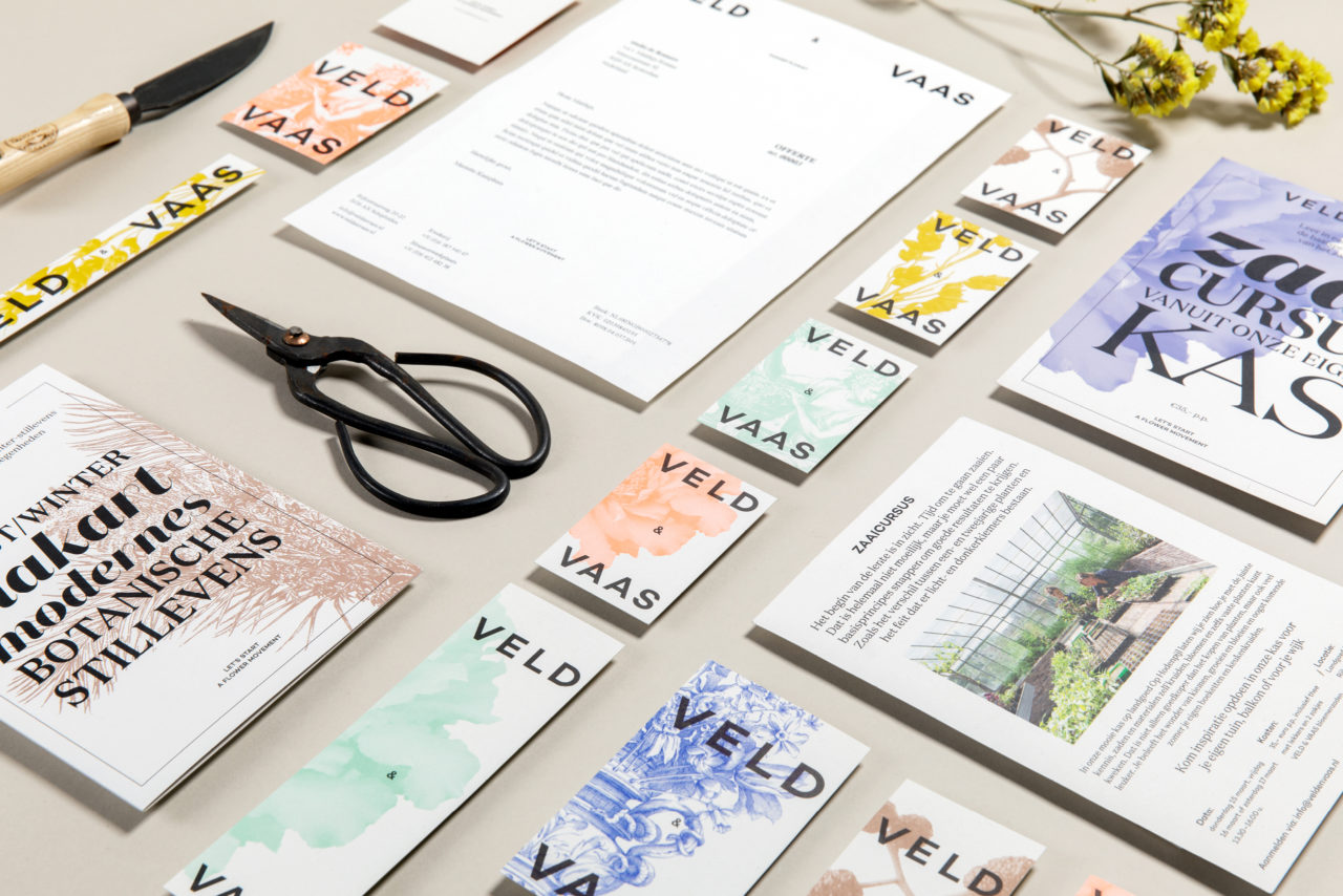 De combinatie van klassiek en modern, die kenmerkend is voor Veld & Vaas, hebben we laten terugkeren in een tijdloos ogende identiteit. Voor het dynamische logo, bijvoorbeeld, hebben we letters gebruikt die de typografie van nu én van de vroege 20e eeuw vertegenwoordigen. De florale beelden komen uit een archief, maar zijn door ons aangepast om ze een eigentijdse uitstraling te geven. Deze combinaties en de diverse verwijzingen naar de visie van Veld & Vaas zorgen voor een eigenzinnige uitstraling met een bijzondere symbiose. Samen geven we uiting aan de missie: Let’s start a flower movement!
