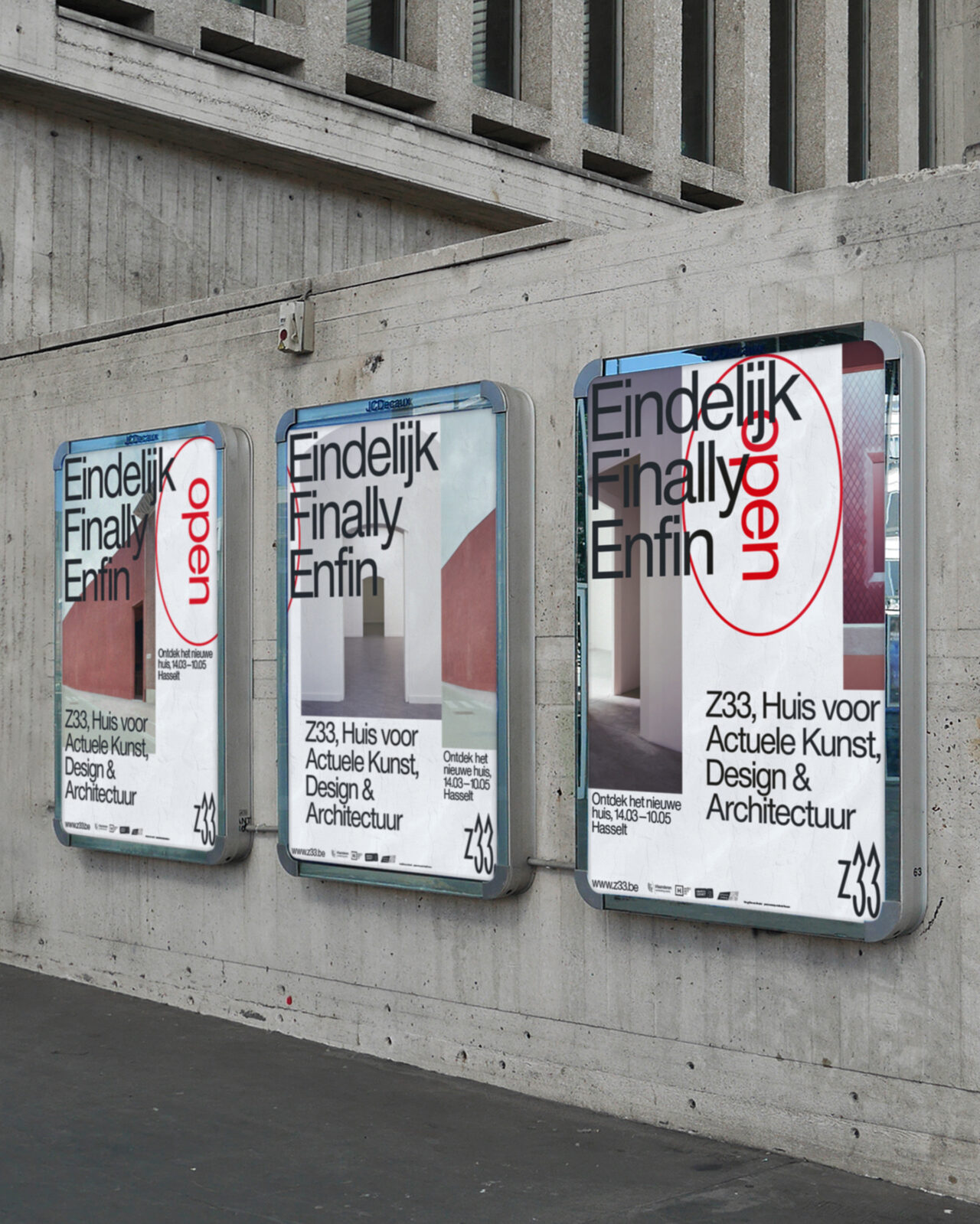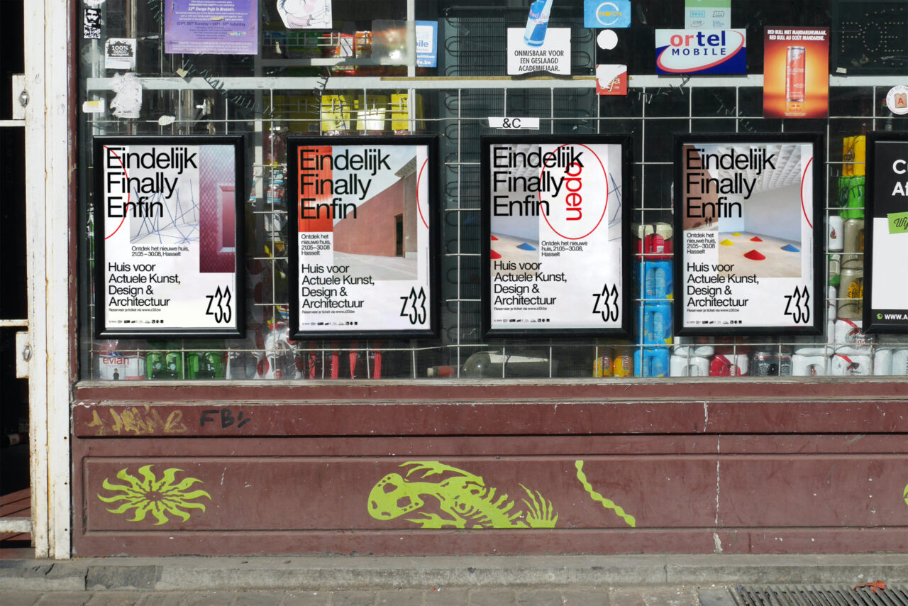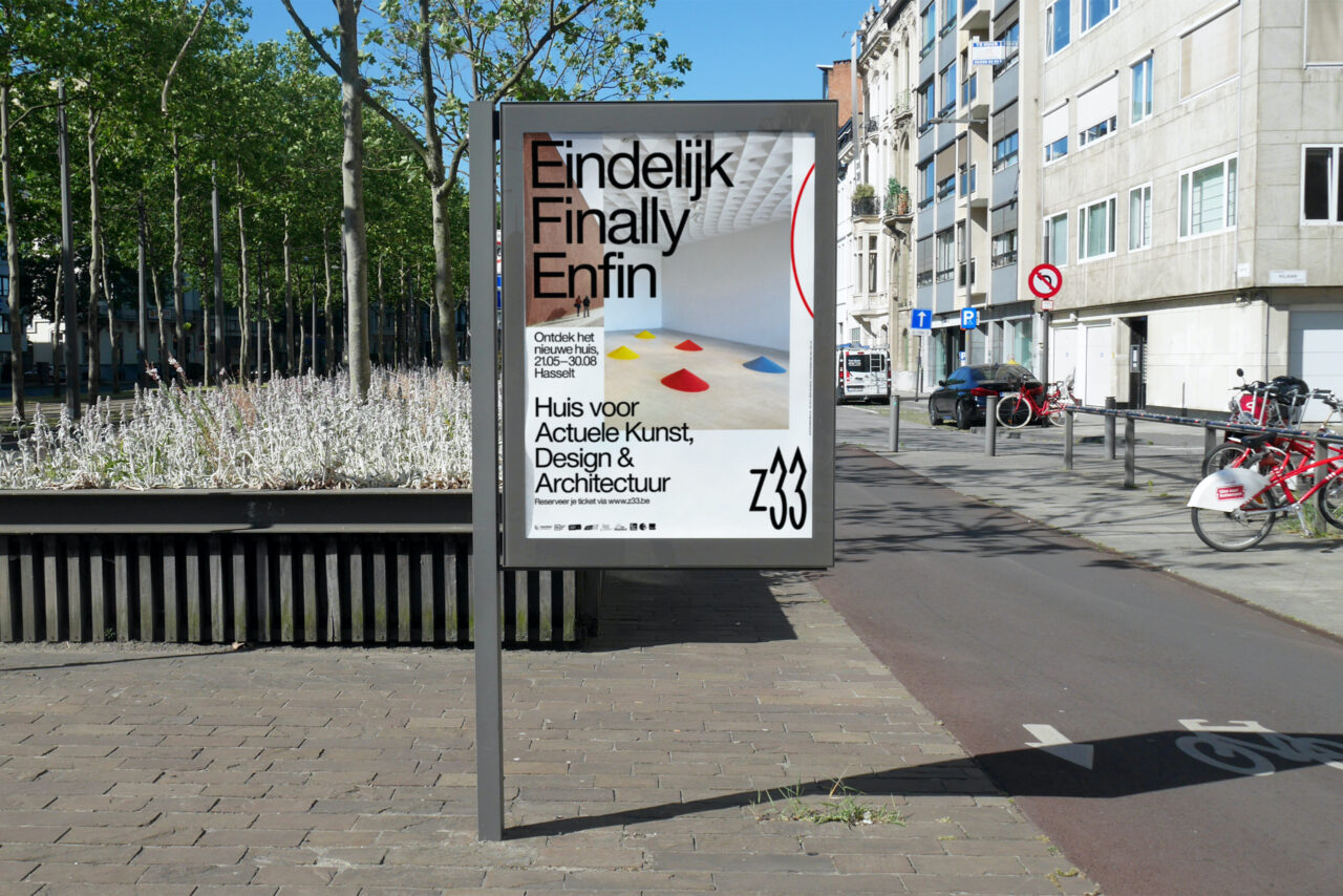Eindelijk! Finally! Enfin! Z33, Huis van Actuele Kunst, Design & Architectuur in Hasselt (BE), is vernieuwd en heropend. Met een toonaangevend nieuw gebouw en een internationale programmering wil Z33 zich de komende jaren profileren als één van de meest toonaangevende kunstinstellingen in Europa. Om deze ambitie waar te maken werd een internationale pitch uitgeschreven. Onze studio werd geselecteerd om de website, openingscampagne en verdere publiekscampagnes te ontwikkelen.